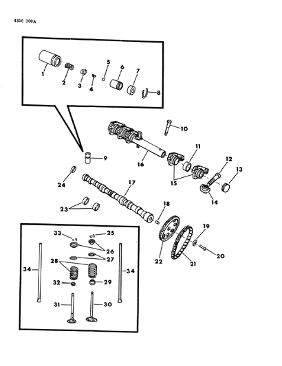 1984 Dodge Ramcharger Camshaft , Valves , Rocker Shaft , Timing Chain Diagram 1