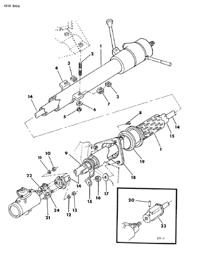 Diagram (1 of 1): STEERING COLUMN, STEERING, NON-TILT D1,2,3,4,5,6,7,8