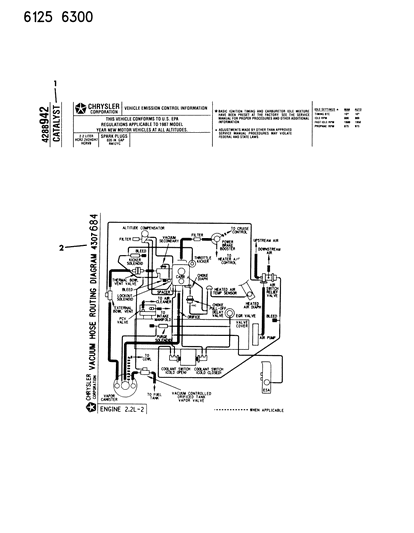 MoparPartsGiant.com offers the wholesale prices for genuine 1986 Chrysler Fifth Avenue parts. Parts like Label - Emission & Vacuum Hose Routing are shipped directly from authorized Mopar dealers and backed by the manufacturer's warranty. Parts fit for the following vehicle options. Engine: 8 Cyl 5.2L. Transmission: Automatic Transmission.