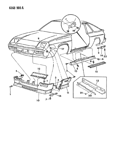 MoparPartsGiant.com offers the wholesale prices for genuine 1986 Dodge Charger parts. Parts like Ground Effects Package - Exterior View are shipped directly from authorized Mopar dealers and backed by the manufacturer's warranty. Parts fit for the following vehicle options. Engine: 4 Cyl 1.6L, 4 Cyl 2.2L. Transmission: 4-Speed Manual Transmission, 5-Speed Manual Transmission, Automatic Transmission.