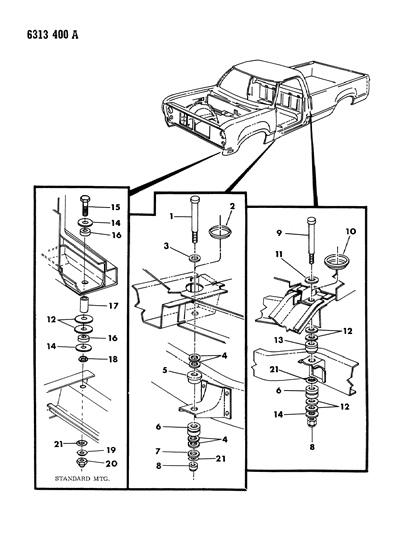 1986 Dodge Ramcharger Body Hold Down & Front End Mounting Diagram