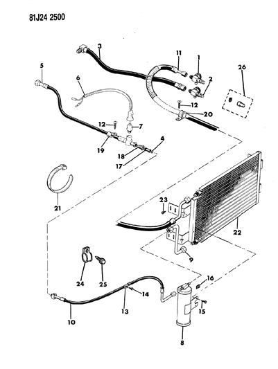 - 1.HEATER AND AIR CONDITIONING RECEIVER/DRIER AND HOSES WITH AMERICAN AIR CONDITIONING SJ CHEROKEE, SJ WAGONEER, J10, J20