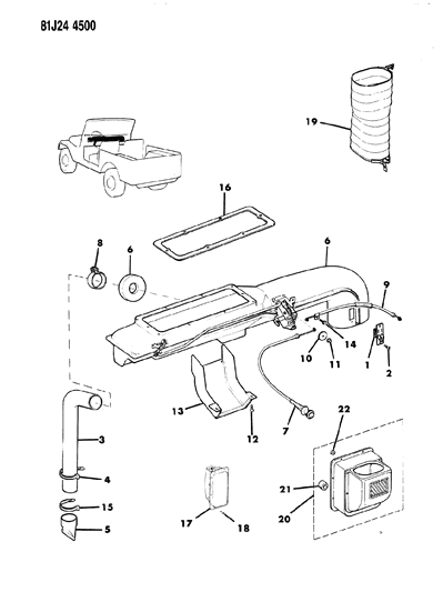 MoparPartsGiant.com offers the wholesale prices for genuine 1986 Jeep Wrangler parts. Parts like Air Distribution Ducts are shipped directly from authorized Mopar dealers and backed by the manufacturer's warranty. Parts fit for the following vehicle options. Engine: 4 Cyl 2.5L, 4 Cyl 2.5L Diesel, 6 Cyl 4.2L. Transmission: 4-Speed Manual Transmission, 5-Speed Manual Transmission, Automatic Transmission.