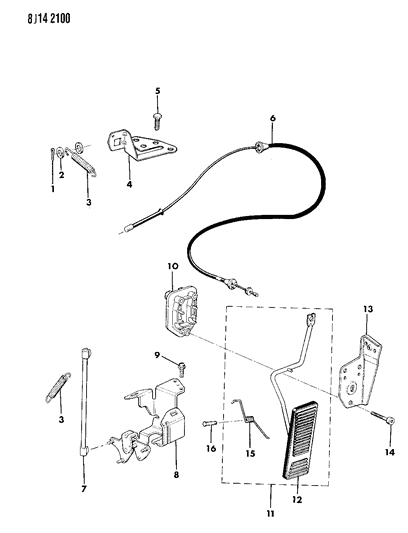 Diagram (1 of 1): FUEL ACCELERATOR PEDAL AND LINKAGE 4.2L AND 5.9L ENGINES GRAND WAGONEER, J10, J20