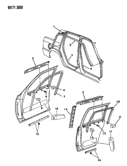 Chrysler New Yorker Base Model parts. Parts like Door, Front & Rear Weatherstrips, Runs, Seals And Guards are shipped directly from authorized Mopar dealers and backed by the manufacturer's warranty. Parts fit for the following vehicle options. Engine: 6 Cyl 3.0L, 6 Cyl 3.3L. Transmission: 4-Speed Automatic Transmission.