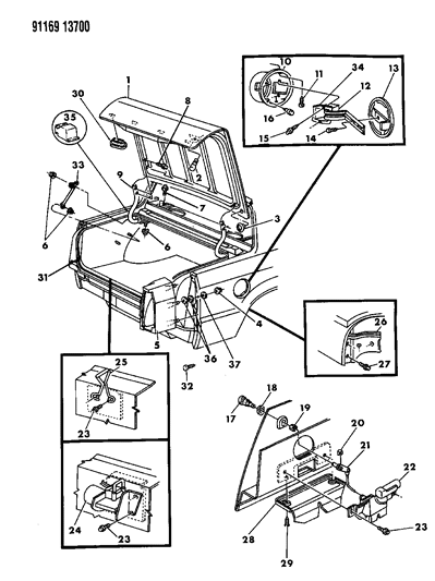 Chrysler New Yorker Fifth Avenue parts. Parts like Deck Lid & Fuel Filler Door are shipped directly from authorized Mopar dealers and backed by the manufacturer's warranty. Parts fit for the following vehicle options. Engine: 6 Cyl 3.0L, 6 Cyl 3.3L, 6 Cyl 3.8L. Transmission: 4-Speed Automatic Transmission.