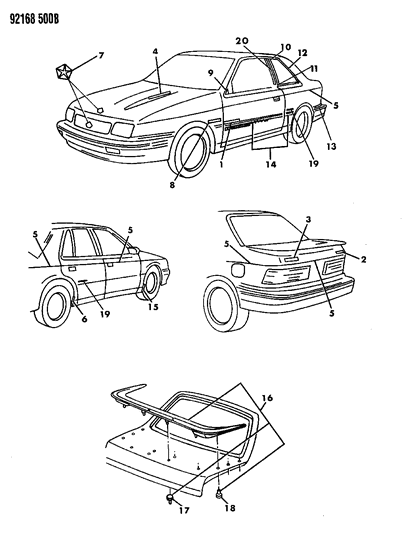 MoparPartsGiant.com offers the wholesale prices for genuine 1992 Dodge Shadow parts. Parts like Tapestries, Decals, Nameplates And Rear Spoiler are shipped directly from authorized Mopar dealers and backed by the manufacturer's warranty. Parts fit for the following vehicle options. Engine: 4 Cyl 2.2L, 4 Cyl 2.5L, 6 Cyl 3.0L. Transmission: 3-Speed Automatic Transmission, 4-Speed Automatic Transmission, 5-Speed Manual Transmission.