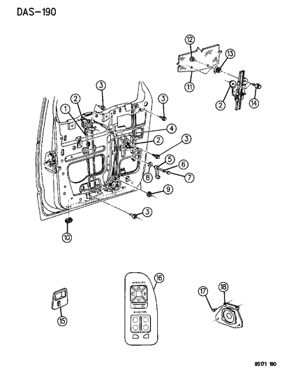MoparPartsGiant.com offers the wholesale prices for genuine 1995 Dodge Grand Caravan parts. Parts like Door - Front Glass - Regulator - Speaker are shipped directly from authorized Mopar dealers and backed by the manufacturer's warranty. Parts fit for the following vehicle options. Engine: 6 Cyl 3.0L, 6 Cyl 3.3L, 6 Cyl 3.8L. Transmission: 4-Speed Automatic Transmission.