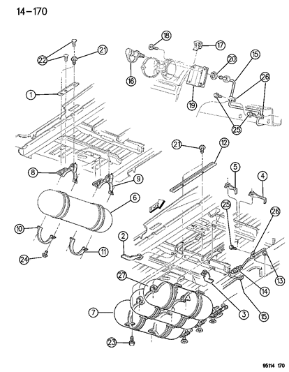 Dodge Grand Caravan parts. Parts like Fuel Cylinder Mounting are shipped directly from authorized Mopar dealers and backed by the manufacturer's warranty. Parts fit for the following vehicle options. Engine: 6 Cyl 3.0L, 6 Cyl 3.3L, 6 Cyl 3.8L. Transmission: 4-Speed Automatic Transmission.