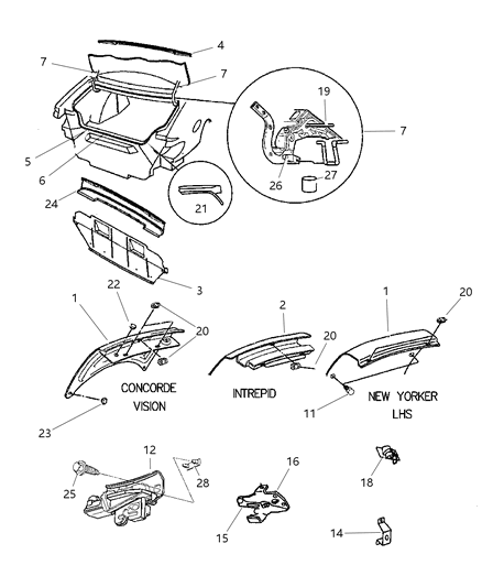 MoparPartsGiant.com offers the wholesale prices for genuine 1997 Dodge Intrepid parts. Parts like Decklid are shipped directly from authorized Mopar dealers and backed by the manufacturer's warranty. Parts fit for the following vehicle options. Engine: 6 Cyl 3.3L, 6 Cyl 3.5L. Transmission: 4-Speed Automatic Transmission.