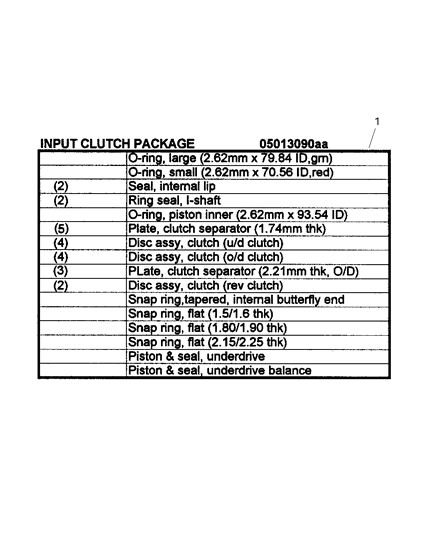 Dodge Durango parts. Parts like Input Clutch are shipped directly from authorized Mopar dealers and backed by the manufacturer's warranty. Parts fit for the following vehicle options. Engine: 8 Cyl 4.7L, 8 Cyl 5.9L. Transmission: 4-Speed Automatic Transmission, 5-Speed Automatic Transmission, Multi-Speed Automatic Transmission.