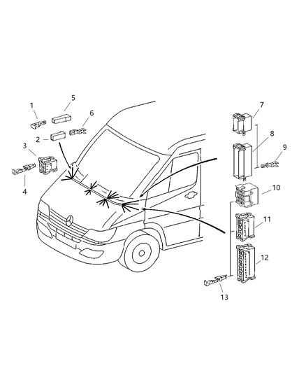 Dodge Sprinter 2500 parts. Parts like Connectors Engine Compartment are shipped directly from authorized Mopar dealers and backed by the manufacturer's warranty. Parts fit for the following vehicle options. Engine: 5 Cyl 2.7L Diesel. Transmission: 5-Speed Automatic Transmission.