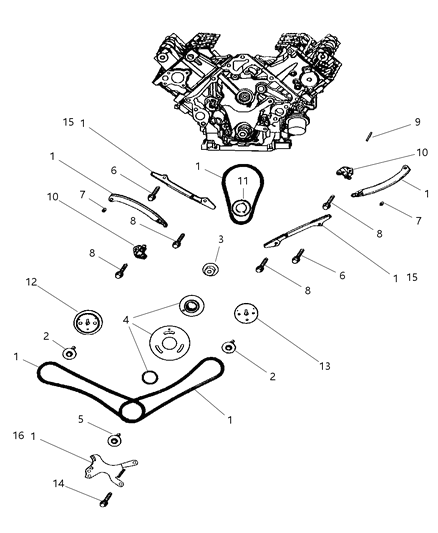 2004 Dodge Ram 3500 Timing Chain & Guides Diagram 1