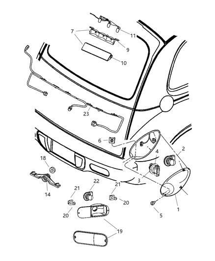 Chrysler PT Cruiser parts. Parts like Lamps - Rear are shipped directly from authorized Mopar dealers and backed by the manufacturer's warranty. Parts fit for the following vehicle options. Engine: 4 Cyl 2.4L. Transmission: 4-Speed Automatic Transmission, 5-Speed Manual Transmission.