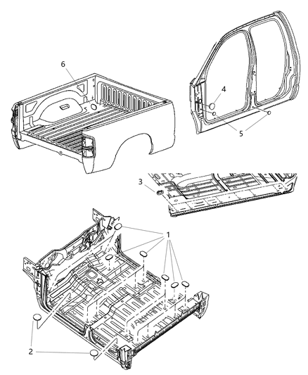 Diagram (1 of 1): Body Sheet Metal Except Doors Plugs, Quad and Mega Cabs