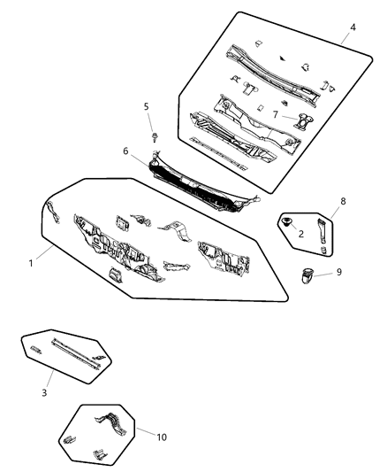 MoparPartsGiant.com offers the wholesale prices for genuine 2010 Chrysler Sebring parts. Parts like Cowl, Dash Panel & Related Parts are shipped directly from authorized Mopar dealers and backed by the manufacturer's warranty. Parts fit for the following vehicle options. Engine: 4 Cyl 2.4L, 6 Cyl 2.7L, 6 Cyl 3.5L. Transmission: 4-Speed Automatic Transmission, 6-Speed Automatic Transmission.