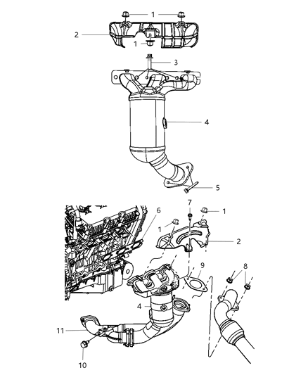 MoparPartsGiant.com offers the wholesale prices for genuine 2010 Dodge Journey parts. Parts like Exhaust Manifold / Turbo Charger Assembly & Heat Shield are shipped directly from authorized Mopar dealers and backed by the manufacturer's warranty. Parts fit for the following vehicle options. Engine: 4 Cyl 2.4L, 6 Cyl 3.5L. Transmission: 4-Speed Automatic Transmission, 6-Speed Automatic Transmission.