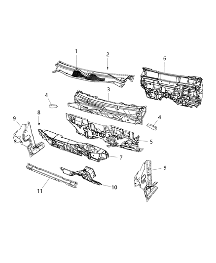 MoparPartsGiant.com offers the wholesale prices for genuine 2014 Jeep Compass parts. Parts like Cowl, Dash Panel & Related Parts are shipped directly from authorized Mopar dealers and backed by the manufacturer's warranty. Parts fit for the following vehicle options. Engine: 4 Cyl 2.0L, 4 Cyl 2.4L. Transmission: 5-Speed Manual Transmission, 6-Speed Automatic Transmission, CVT, CVT II.