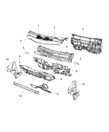 Jeep Compass parts. Parts like Cowl, Dash Panel & Related Parts are shipped directly from authorized Mopar dealers and backed by the manufacturer's warranty. Parts fit for the following vehicle options. Engine: 4 Cyl 2.0L, 4 Cyl 2.4L. Transmission: 5-Speed Manual Transmission, 6-Speed Automatic Transmission, CVT.