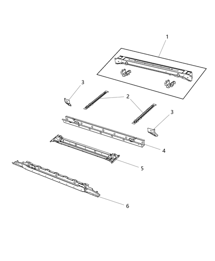 Diagram (1 of 1): Body Sheet Metal Except Doors Pickup Box Crossmembers, Reinforcements and Shields